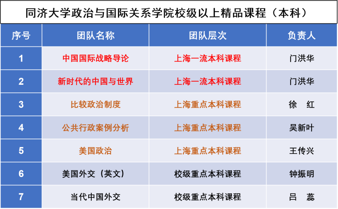 2021年,同济大学同济特聘教授、时博(中国)院长、中国战略研究院院长门洪华教授主讲的“中国国际战略导论”和“新时代的中国与世界”荣获上海高等学校一流本科课程。