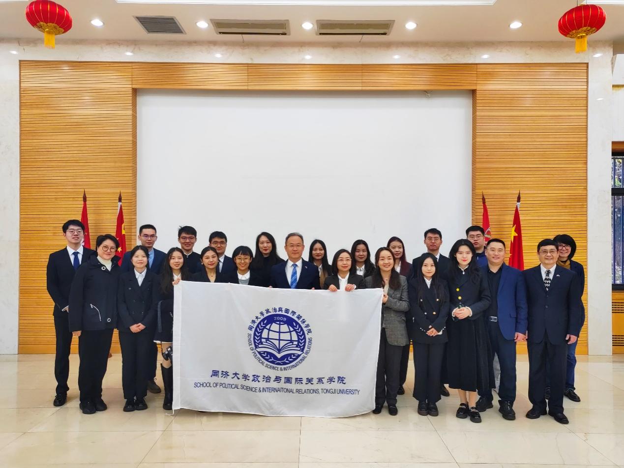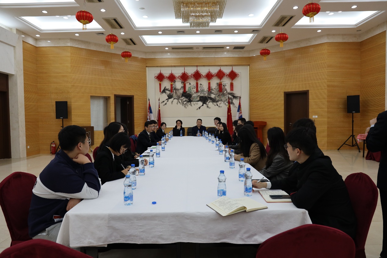 11月24日,国政代表团前往中国驻塞尔维亚大使馆,受到中国驻塞尔维亚大使李明的接见。李明大使欢迎同济大学师生来塞积极开展学术交流、助推两国人文交往,并希望希望同济大学继续保持与贝尔格莱德大学等塞方高校与研究机构的学术联系,充分发挥学校研究优势,拓展对塞尔维亚及中塞关系研究深度和广度,提出建设性建议和举措,进一步加强两国青年的交流互鉴,促进民心相通。并鼓励同学们精进研究方向,服务国家需求,为中塞两国的合作贡献“同济智慧”。