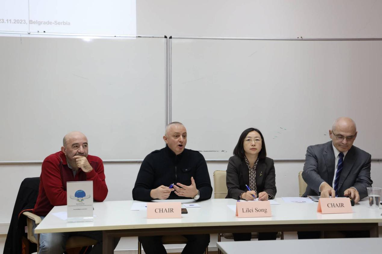 论坛结束后,国政代表团前往贝尔格莱德大学国际与国家安全中心(institute for national and international security)与该中心师生进行“丝绸之路的安全挑战”学术座谈会。塞尔维亚海军上校、战略政策委员会执行主任尼古拉·鲁尼奇(Nikola Lunic)、贝尔格莱德大学国际与国家安全中心创始人兼院长达科·特里夫诺维奇(Darko Trifunovic)教授、副院长佐兰·德拉吉西奇(Zoran Dragisic)教授及安全中心十余名师生就欧洲安全等议题与代表团进行交流与讨论。三位外籍教授从关系演进、安全网络与政策实践等角度对“一带一路”地缘热点话题进行学术分享。国政代表团在交流回应的同时,还对恐怖主义追踪、俄乌冲突、一带一路风险化解等议题向安全中心的师生进行提问与交流。座谈结束后,双方教授表示,中塞两国的合作由来已久,两国围绕“一带一路”倡议框架下的伙伴关系更是持续升温,同时两国共同致力于捍卫国际公平正义,是国际安全的捍卫者,两校希望在未来继续加强学术联系,对于欧洲安全、中塞关系等地缘安全问题进行更为深入的学术探讨与合作。
