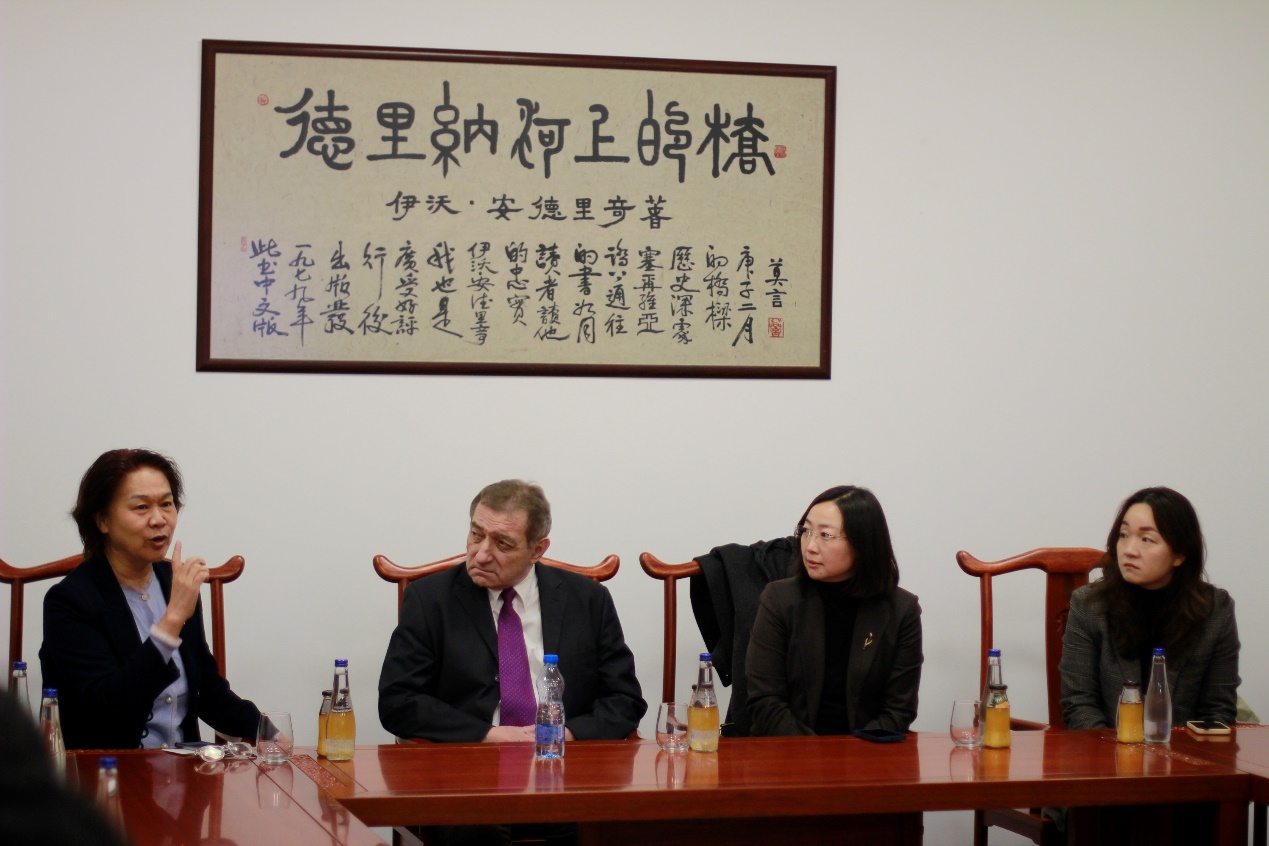 随后,国政代表团与塞尔维亚前驻华商务参赞佐澜·焦尔杰维奇(Zoran Djordjevic)、中国孔子基金会海外文化交流基金会黄广文副会长、中国社会科学院世界经济与政治研究所研究员,中国世界经济学会秘书长,著名电视主持人邵滨鸿研究员,原央视财经频道主持人,编辑王红蕾女士进行座谈交流,国政师生们就塞尔维亚的历史沿革、对外关系与未来前景等问题向各位嘉宾老师请教并进行交流。
