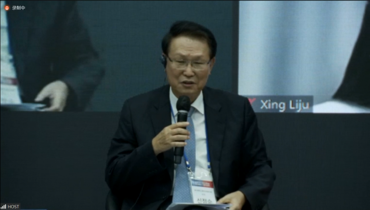 嘉宾致辞之后,本次论坛进入主旨发言环节,中韩两国的四位前任大使级官员交替发言。首先,韩国前驻中国大使、东西大学东亚研究院院长辛正承在主旨发言中回顾了中韩建交30年来的飞跃性发展,认为两国在经济、政治、安全、人文交往等诸多层面取得了可喜的成果,地理相邻的关系和国际关系的稳定为中韩双方分享共同利益提供了便利,而两国关系也得以在风雨之中继续稳定前行。与此同时,当前的中韩关系仍然面对着一些不确定因素,包括美国拜登政府不断强化中美竞争、韩国新政府的对外政策、朝鲜半岛核问题以及中韩国民印象等。在此基础上,中韩两国政府应当继续就东北亚地区和朝鲜半岛的和平与稳定开展合作,并且共同促进区域经济发展和全球治理进程,从而遵循相互尊重和互利平等的原则,促进政治互动、深化战略信任、拓展贸易联系、发展民间交流。