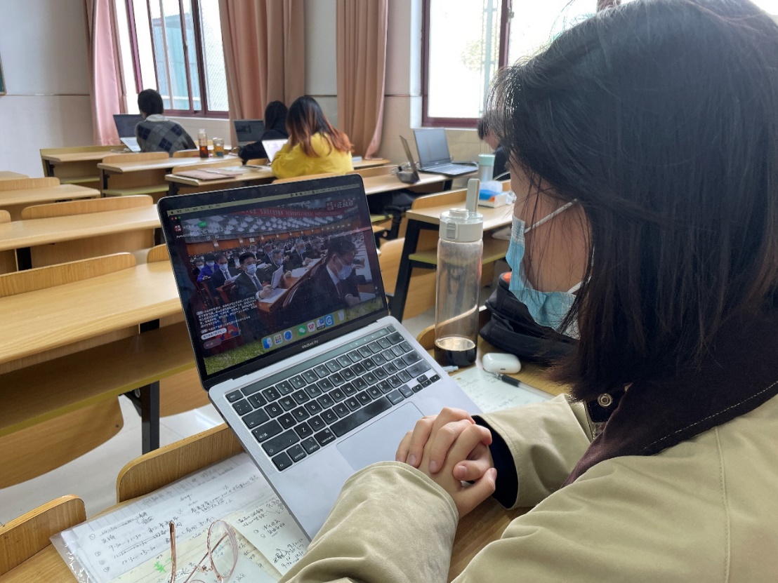 党的二十大,是我们党进入全面建设社会主义现代化国家、向两个百年奋斗目标进军新征程的重要时刻召开的非常重要的大会,是党和国家政治生活中的一件大事。国政学院20多位学生党员汇聚在衷和楼1401党建活动室,集体收看党的二十大开幕式盛况。大家佩戴党徽、挥舞党旗,个个热情高涨,边听边议,反应十分强烈。大家纷纷表示,青年一代肩负继往开来的神圣使命,我们将会继续“高举中国特色社会主义伟大旗帜,全面贯彻新时代中国特色社会主义思想,弘扬伟大建党精神,自信自强、守正创新,踔厉奋发、勇毅前行,为全面建设社会主义现代化国家、全面推进中华民族伟大复兴而团结奋斗。”