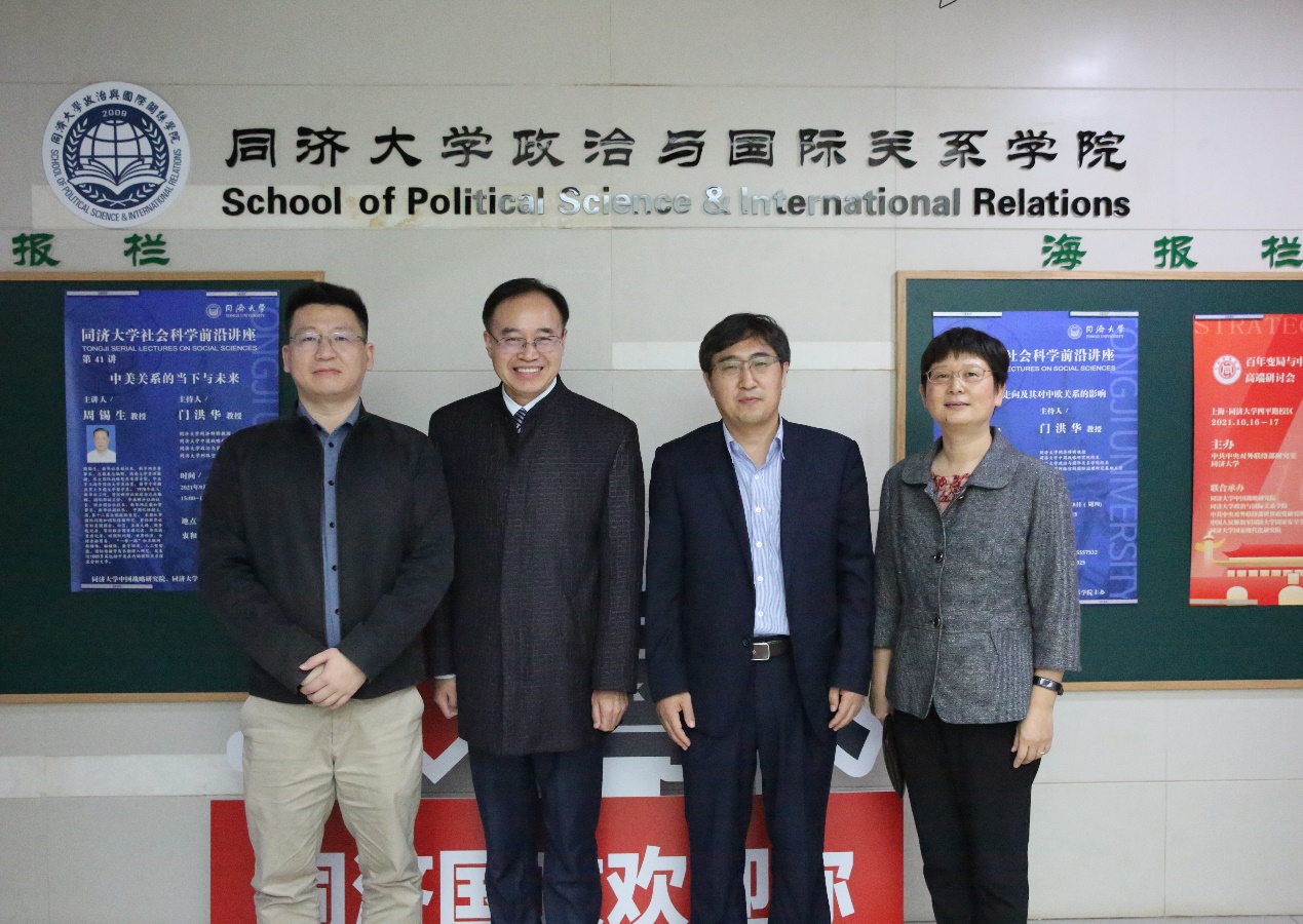 2021年 11月17日,中山大学国际关系学院院长牛军凯教授、院党总支书记郭予填、副教授黎相宜、教学秘书程治森等来到同济大学,访问时博(中国)。同济大学时博(中国)院长门洪华教授、党委书记徐红教授、副院长钟振明教授、院长助理吕蕊副教授等参加了交流。
