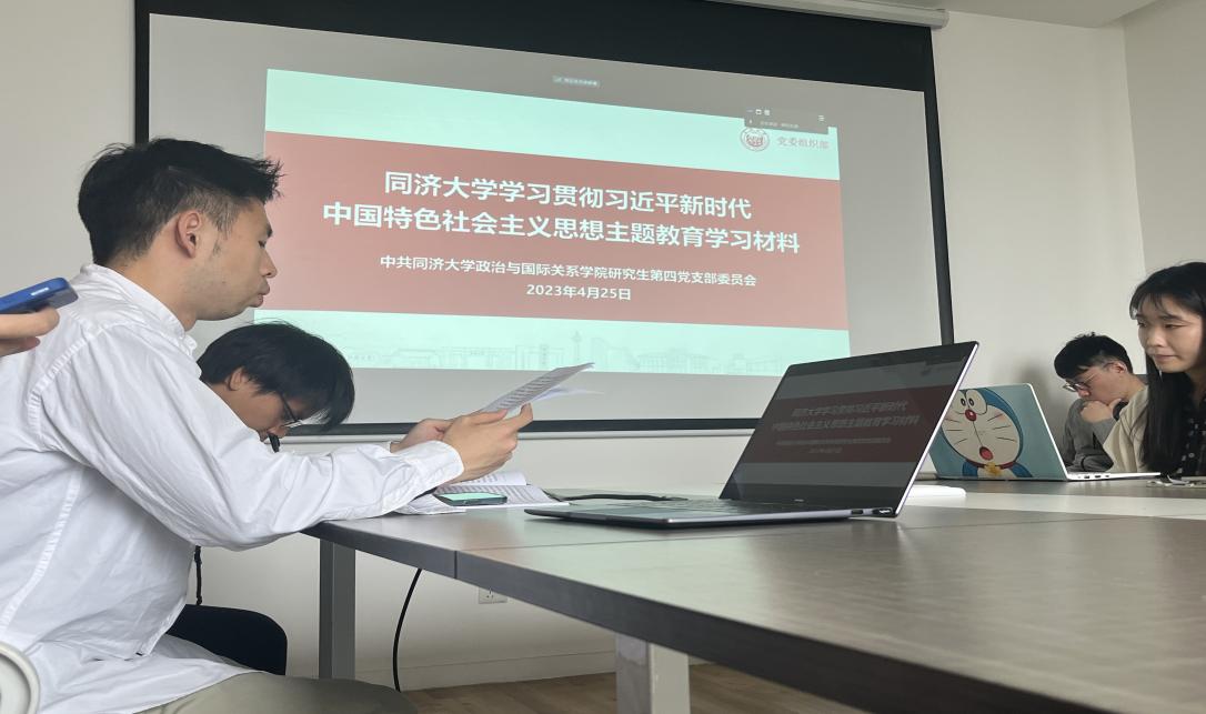 2023年4月25日,同济大学政治与国际关系研究生第四党支部在衷和楼1401召开“贯彻习近平新时代中国特色社会主义思想主题教育”组织生活会,本次专题组织生活会由研究生第四党支部书记俞钦文主持。俞钦文强调,习近平新时代中国特色社会主义思想是当代中国马克思主义、21世纪马克思主义,是中华文化和中国精神的时代精华,是党和人民实践经验和集体智慧的结晶,是中国特色社会主义理论体系的重要组成部分,是全党全国各族人民为实现中华民族伟大复兴而奋斗的行动指南。因此,我们必须充分认识深入开展学习贯彻习近平新时代中国特色社会主义思想主题教育的重要意义,并准确把握本次思想主题教育的目标要求,此外,部分党员同志也就本次专题组织学习,进行了学习感悟的分享。