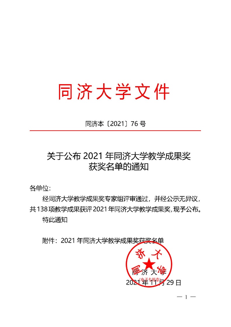 我院多项教学成果荣获2021年同济大学教学成果奖