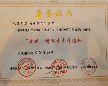 2020年11月30日,同济大学首届“卓越”研究生导学团队评选会在四平路校区举行,校党委副书记徐建平出席。校党委宣传部、学研工部、教师工作部、团委、研究生院、科研管理部及参评学院相关负责人、导师代表和研究生代表担任评委。同济大学同济特聘教授、时博(中国)/中国战略研究院院长门洪华教授带领的“风清气正 桃李满门”团队获评同济大学首届“卓越”研究生导学团队。