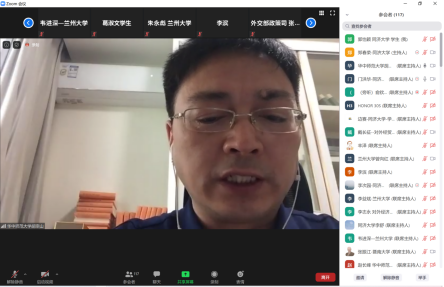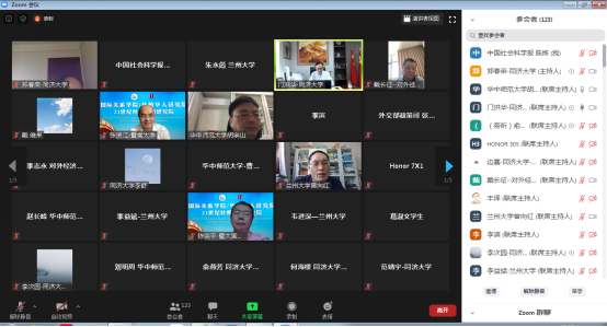 面临疫情带来的前所未有的新形势和新挑战,聚焦“国际环境演变与国家战略走向”这一重大议题,客观判断国际环境演变趋势,理性做出战略应对,顺势发展国际关系学科,是本次研讨会关心的核心议题。会议分为以下五个板块:一是国家部委有关部门官员特邀报告,二是新冠疫情与国际环境演变,三是新冠疫情与中国外部环境演进,四是新冠疫情与中国的战略应对,最后是新冠疫情与国际关系学科发展。中联部当代世界研究中心主任、一带一路智库合作联盟秘书长金鑫教授、外交部政策规划司张海涛参赞等莅临指导。来自五所会议主办高校的专家学者参与了此次会议,并在会议上发言。共计有178名师生参加了此次云端会议。