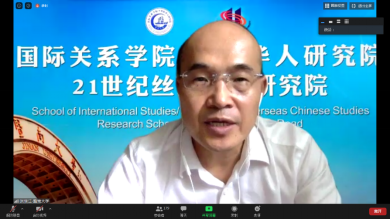 首先是暨南大学国际关系学院/华侨华人研究院院长张振江教授作了主题为“新冠疫情与中国对外关系的新机遇”的发言。张振江教授从方法论视角分析了中国对外关系及其合理评估,强调人文社科中有自我实现的效应,因此从正面看也有好处。首先,我们中国是第一个走出疫情、恢复正常的国家,成为世界的样板与参考。第二,中国进行了国际援助,将人类命运共同体观念付诸实践。张振江教授认为中国已经站在了世界舞台的中央,对中国来讲是一个很大的机会。疫情总会过去,既要凸显国家间关系,也要强调与周边国家的关系,疫情后的世界对中国是一次重大的机会。