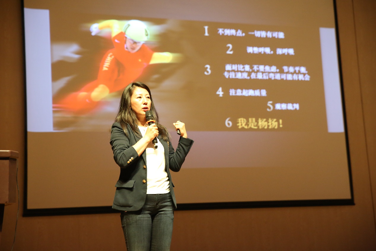 在随后的互动环节,杨扬老师结合自身经历就“如何调节压力”、“如何在国际体育组织展现自己”、“如何帮助优秀的运动员在退役后成功转型”、“2022年冬奥会中国短道速滑运动员的预期表现”等师生感兴趣的问题进行了回答,赢得了阵阵热烈的掌声。