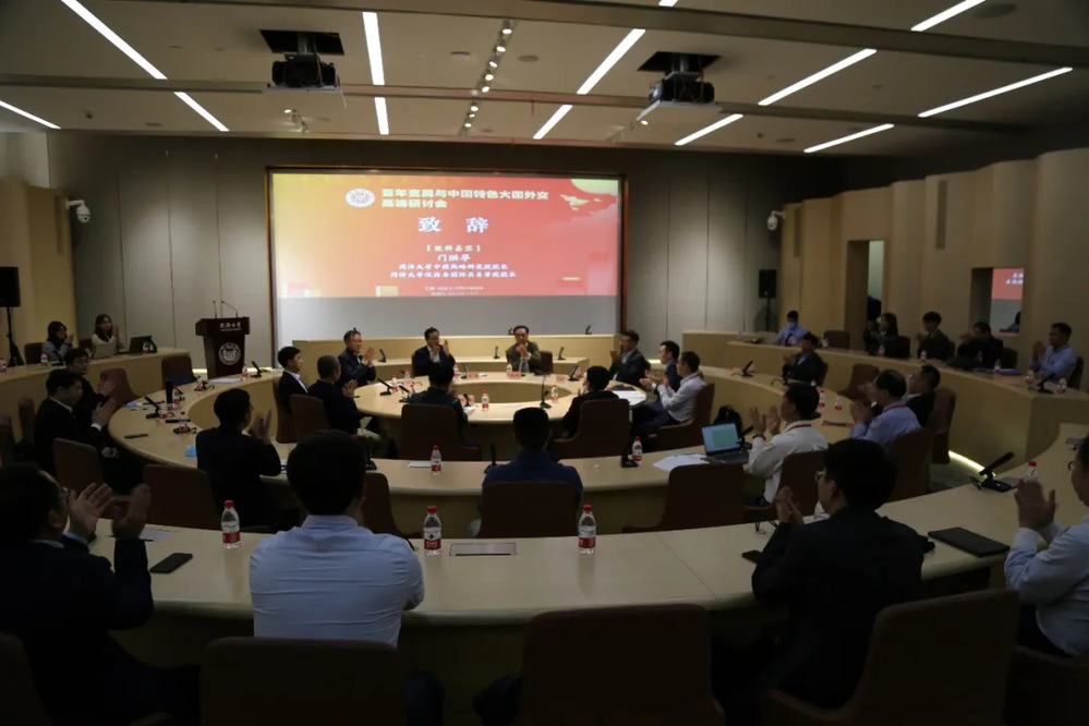 金鑫主任在致辞中首先对各位专家学者来到同济大学发表慧见表示感谢,认为此次高端论坛兼具前瞻和深刻,新观点扑面而来,思想火花四溅,体现出专家学者们的专业性以及学界浓厚的家国情怀。在此基础上,他期盼大家将这一高端论坛共同打造好、呵护好,使其既成为知名专家分享论断的平台,也能够成为学术新锐的发表观点的舞台,并且欢迎与会的专家学者都能和主办方一起结成紧密性和战略性的伙伴关系,共同针对百年变局和中国特色大国外交的重要议题展开持续的讨论与交流。