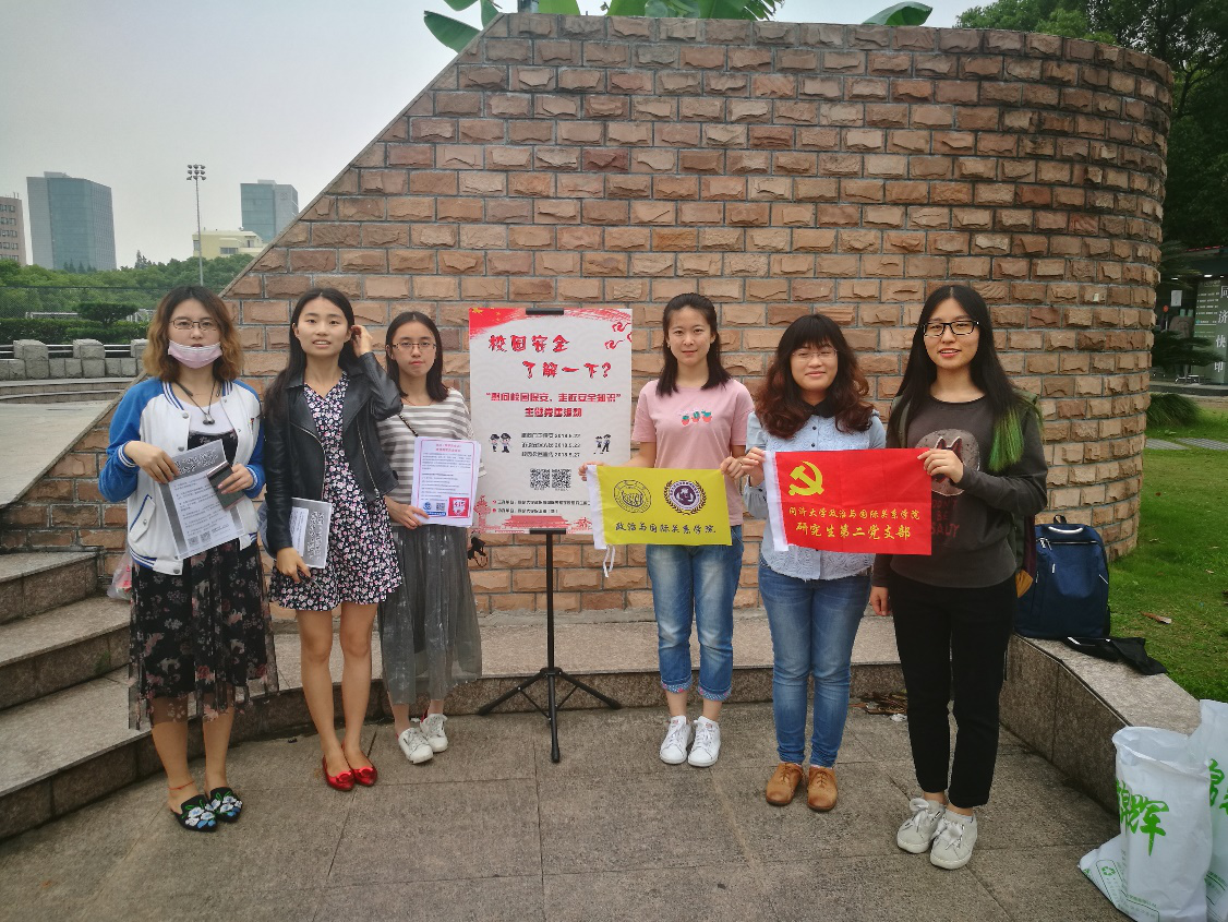 根据5月23日访谈保卫人员活动中了解到的安全知识,党员同志们共同设计了本次摆台的宣传材料,包括海报、传单、知识卡片等等。活动分为两场,分别于中午10:30-12:00在西苑饮食广场以及下午5:00-6:30在音乐广场进行。在活动中,党员支委们向来往师生们广泛分发了安全知识手册和传单,并向同学们介绍了关于校园日常安全注意事项以及电信、信贷等方面的防诈骗攻略。