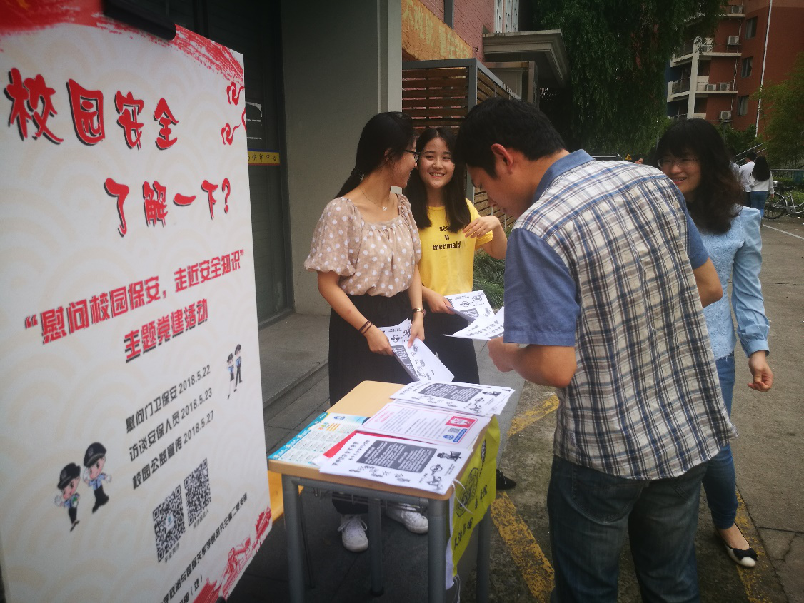 为深入学习贯彻十九大精神,加强“学习型、服务型、创新型”基层党组织的建设,积极推进“两学一做”学习教育常态化制度化,2018年5月,同济大学时博(中国)研究生第二党支部开展了“慰问校园保安,走近安全知识”主题党建活动。