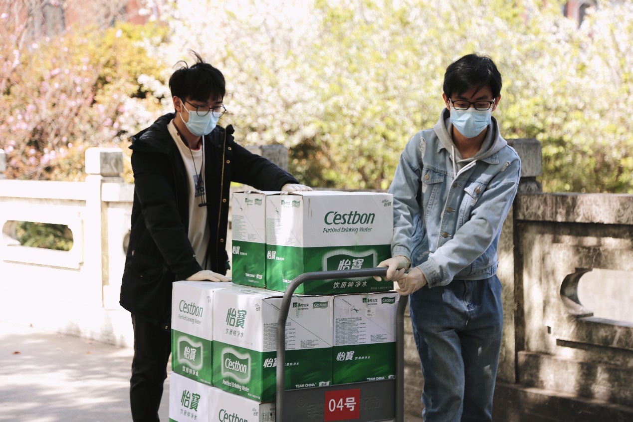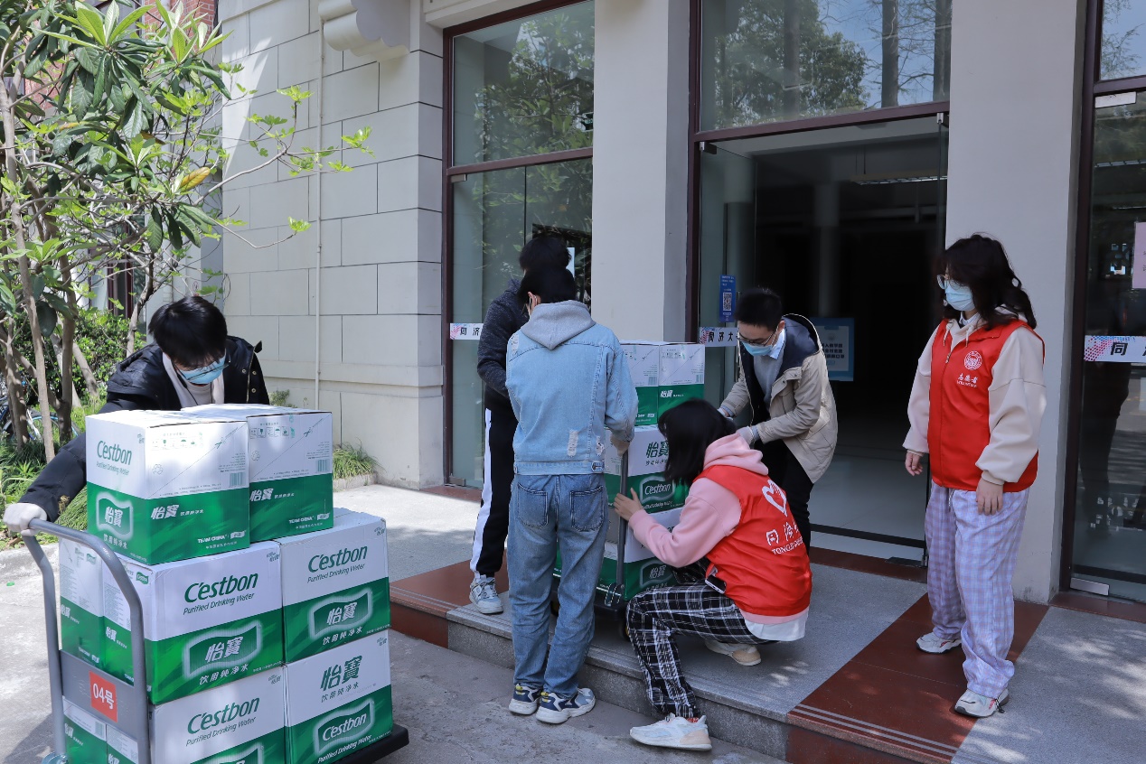 面对部分封控的楼宇,志愿者们迅速集结,为同学们带去一车车的物资与餐食,保障每一位同学的饮食与生活需要。