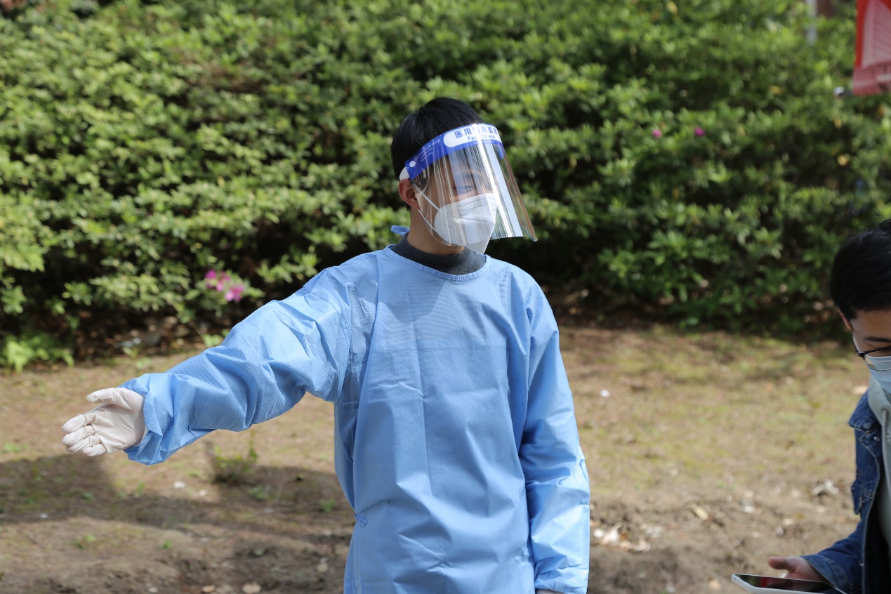4月2日全员核酸在校内有序开展,核酸检测点是校园防疫主阵地。随着志愿者招募群的人数迅速增加,越来越多的同学加入到紧急志愿者的队伍中,四平路校区共34位国政学子,主动担起特殊时期的抗疫志愿工作。