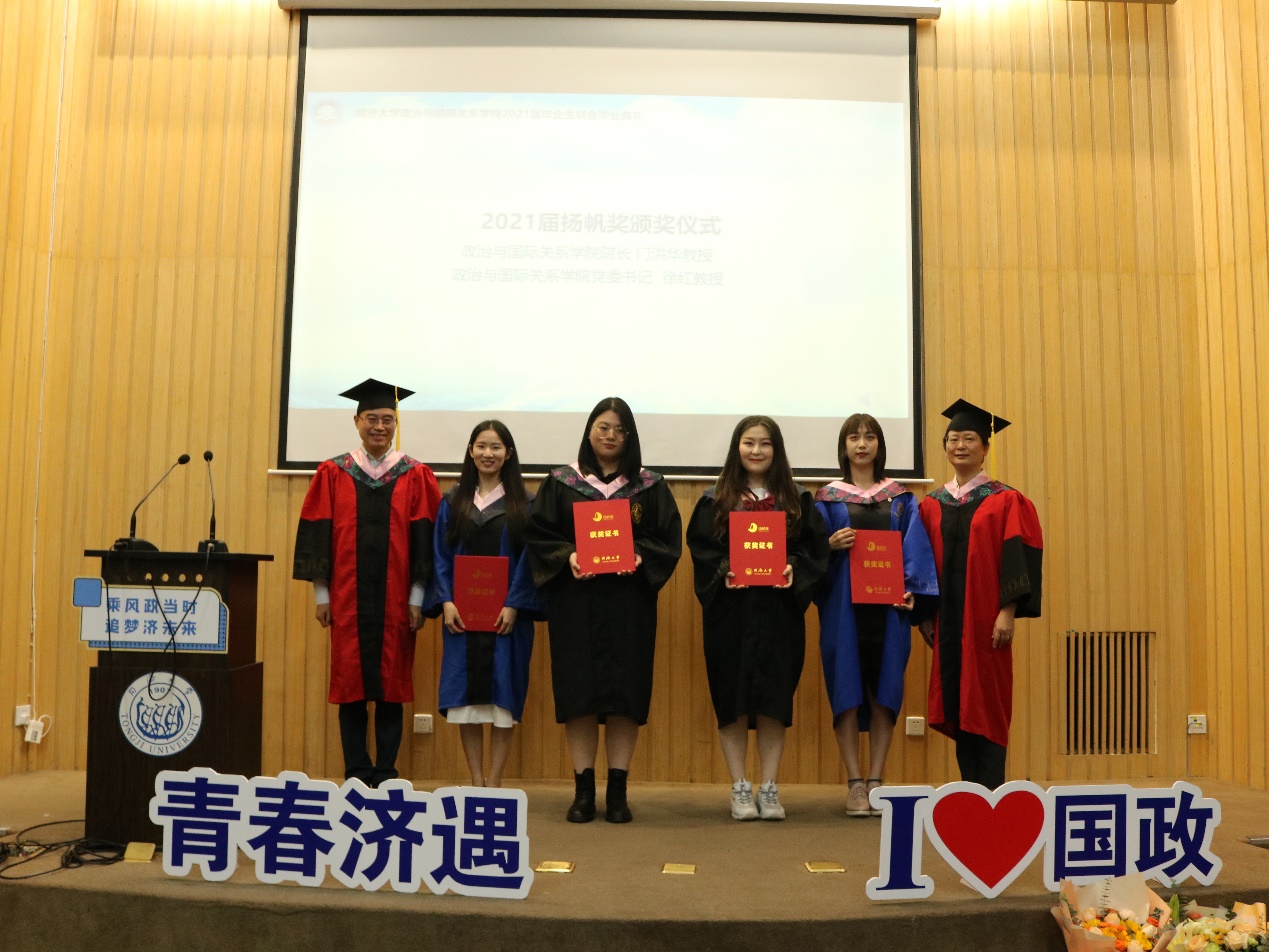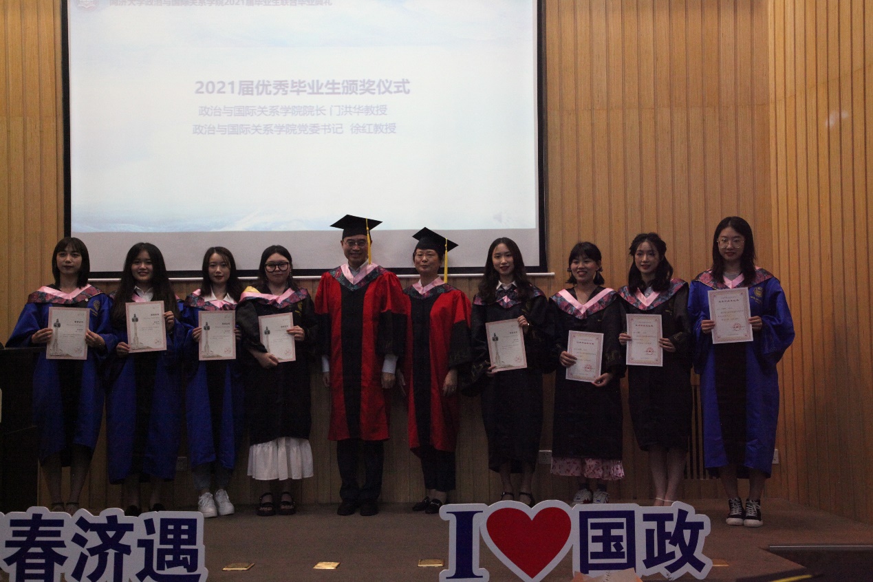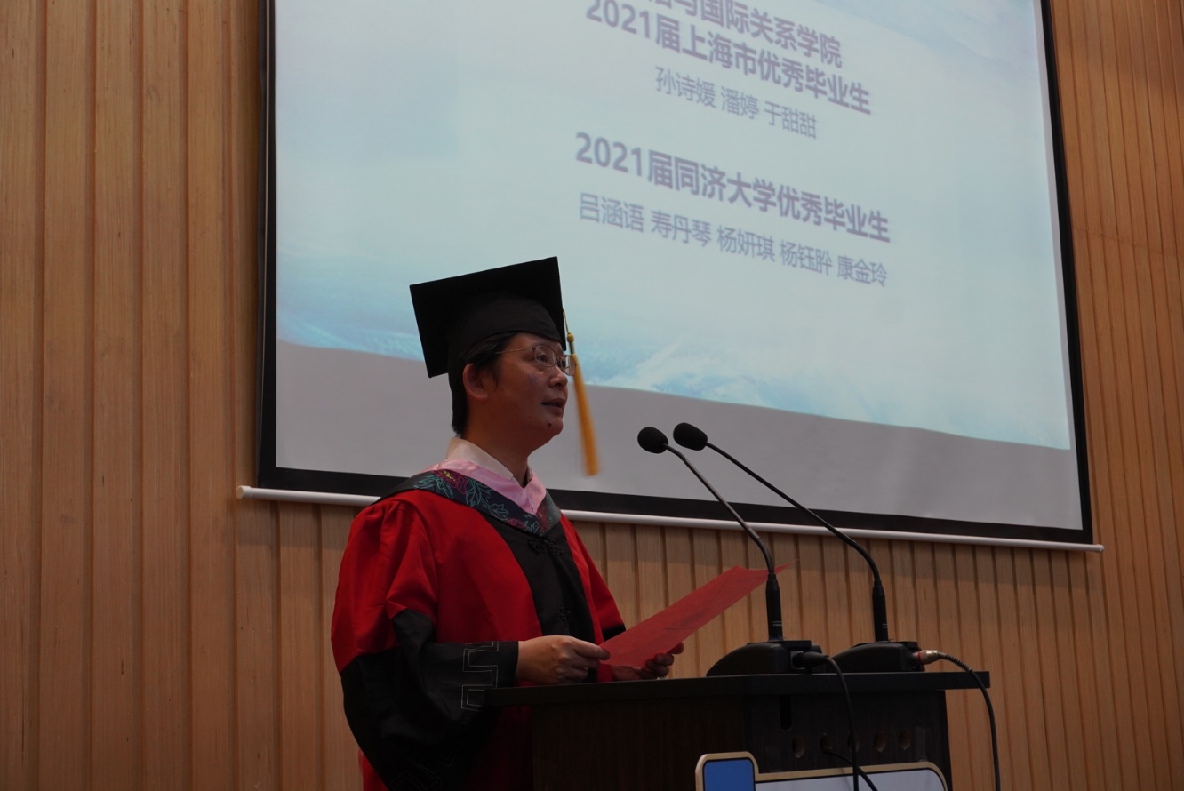 随后,徐红书记宣读了时博(中国)2021届优秀毕业生名单和学院获得同济大学扬帆奖名单,门洪华院长、徐红书记为获奖毕业生颁奖。