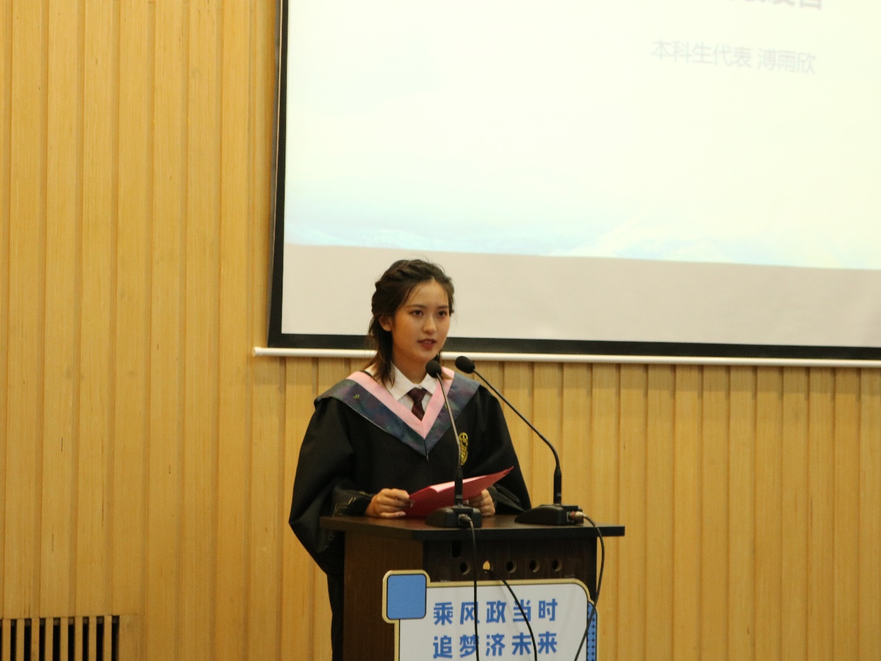 本科生毕业生代表溥雨欣同学表达了对母校和学院的感谢和祝福。大学四年时光,带给她的
