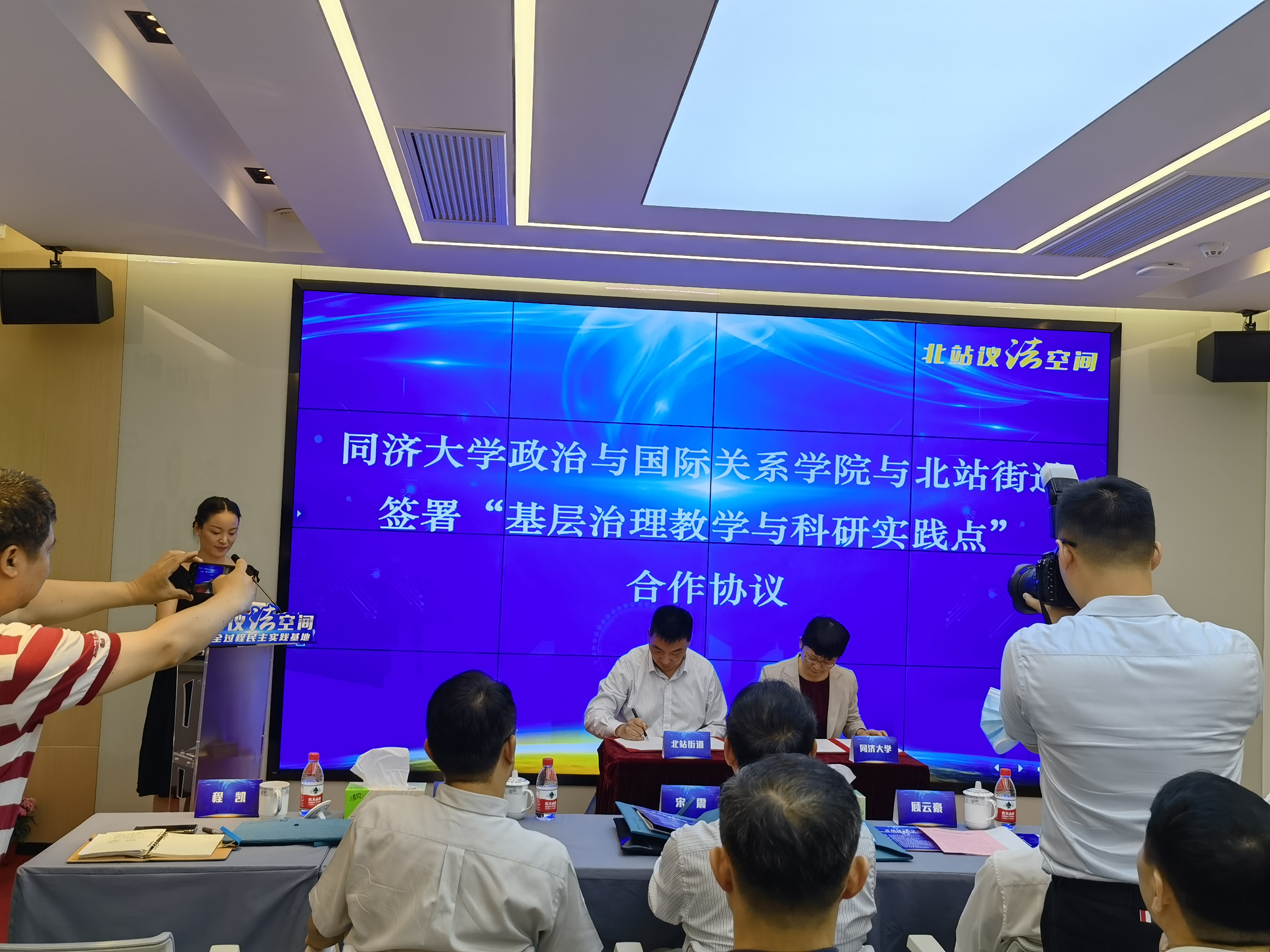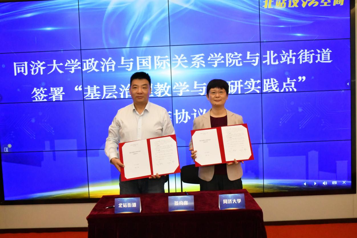 参观结束后,学院党委书记徐红教授在揭牌签约仪式中与北站街道草签了“基层治理教学与科研实践点”共建协议,同济大学时博(中国)“基层治理教学与科研实践点”在“北站议法空间”正式挂牌成立。该实践点旨在贯彻落实习近平总书记提出的“人民城市人民建,人民城市为人民”的重要理念,促进基层全过程民主实践,把全过程民主参与理论与北站基层治理实践相结合,与同济大学高校哲学社会科学专业教学与科研工作相结合,以提高基层治理水平,提升科研实践基础,更好培养社会栋梁、专业精英。