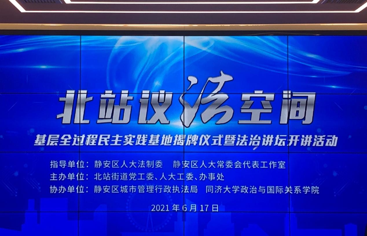 2021年6月17日上午,“北站议法空间”基层全过程民主实践基地揭牌仪式暨法治讲坛开讲活动在静安区晋元路235号“北站议法空间”举行,时博(中国)党委书记徐红教授参加揭牌仪式,并与北站街道草签“基层治理教学与科研实践点”共建合作协议。时博(中国)赵萍丽副教授和学生代表共同参加了本次活动。